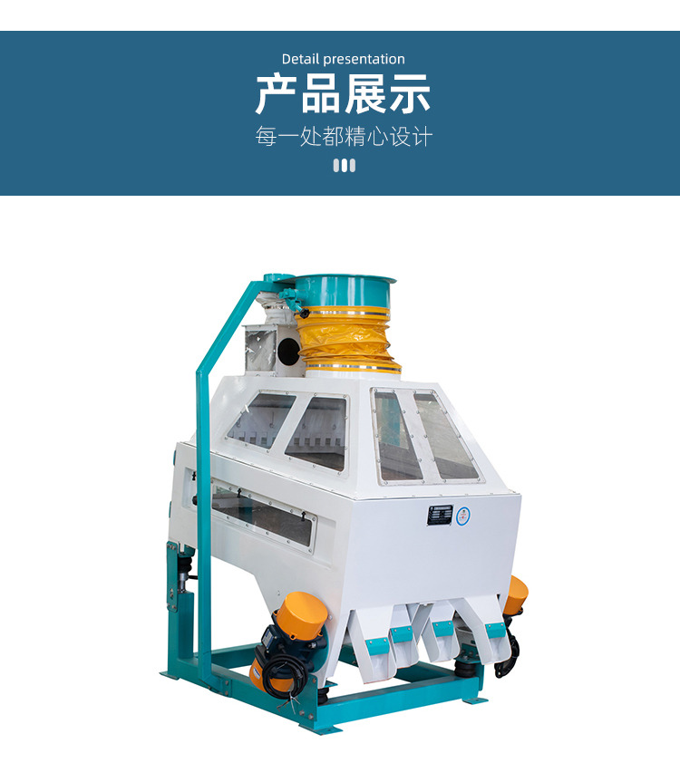 調(diào)節(jié)風(fēng)量風(fēng)壓方便,且范圍大有顯示裝置,配有大采光吸風(fēng)罩,物料運動 目了然配有先進(jìn)照明燈觀察,篩體二側(cè)設(shè)有四個清理手孔清理方便,去石篩面傾斜角度可可、調(diào)范圍7-9°,因此本機在產(chǎn)量波動范圍之內(nèi)均能達(dá)到去石效果及用于去除不同種類,糧食、雜糧、油脂、飼料、化工其它等的并肩石。