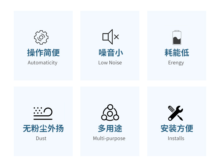 本機采用振動電機傳動機構(gòu),運轉(zhuǎn)平穩(wěn),牢固可靠,工藝性能穩(wěn)定,振動小噪聲小,無粉塵外溢,及操作維修方便。