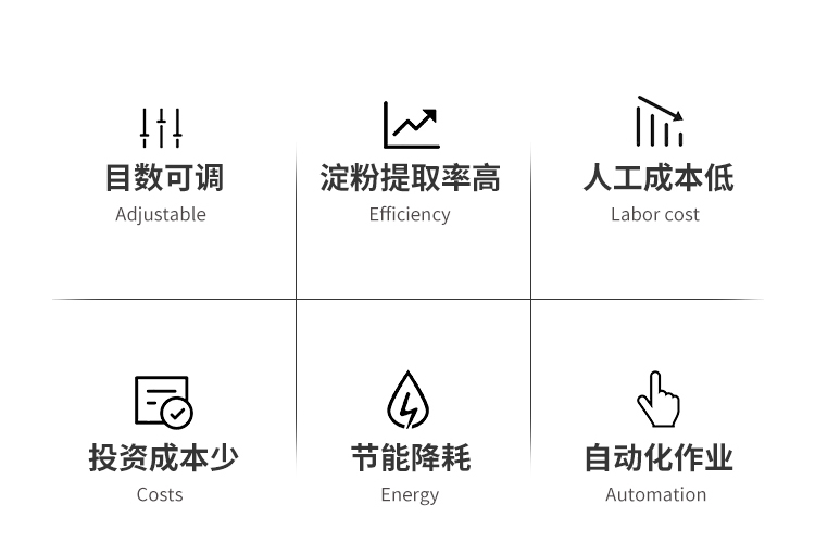 一、 木薯加工生產(chǎn)成套淀粉設(shè)備的生產(chǎn)工藝流程清洗的目的是去砂、去土、去皮、減少淀粉灰份,也便于下道工序的工作。在輸送的同時(shí)進(jìn)行清洗,所以上料要均勻,太多了轉(zhuǎn)籠內(nèi)沒(méi)有空隙,木薯就無(wú)法滾動(dòng),達(dá)不到去皮和清洗的目的。太少了就達(dá)不到生產(chǎn)量。操作人員還要注意用水的壓力,水壓過(guò)低帶不走泥沙,一般水壓不能低于0.25Mpa,時(shí)刻注意轉(zhuǎn)籠和輸送機(jī)的運(yùn)轉(zhuǎn)情況,不能形成原料在此過(guò)程中積壓。機(jī)器一般工作七天加一次潤(rùn)滑油。