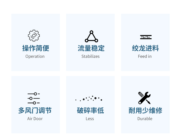 采用絞龍強制進料,流量穩(wěn)定,破碎率低。