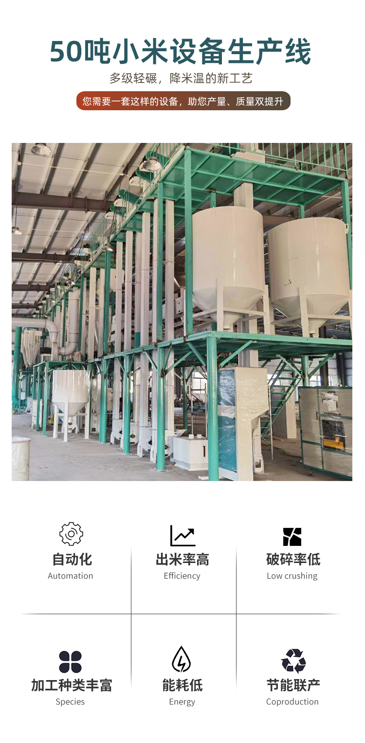 該生產(chǎn)設(shè)備可加工原糧有粳性小米、糯性小米、黃小米、白小米、綠小米、黑小米、高粱米及香小米。可出成品為系列小米、高粱米、飼料。產(chǎn)成品小米、高粱米的得率高、色澤好、無雜質(zhì),適應(yīng)市場需求,為客戶創(chuàng)造高的經(jīng)濟價值。整套產(chǎn)品工藝先進、設(shè)備精良、專用性強、布置合理、動耗小、出品率高、成品質(zhì)量好,廣泛應(yīng)用于食品加工企業(yè)和糧食加工企業(yè)。